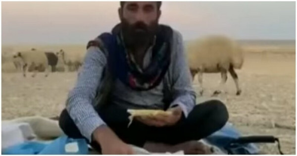 Мужчина решил перекусить и заодно снять видео. Он удобно расположился на пледе, начал что-то рассказывать, как вдруг возле него появилась овца и помешала приему пищи.