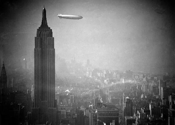 1. Немецкий дирижабль "Гинденбург" проплывает мимо Эмпайр-стейт-билдинг над Манхэттеном, 8 августа 1936 года