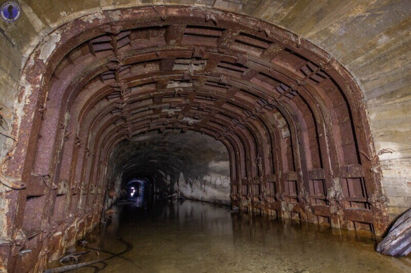 В нескольких местах тоннеля осталась многоразовая разборная опалубку, использовавшаяся при заливке бетона.