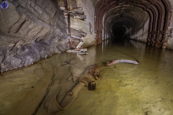 Сюда мало кто ходит т.к. эта часть объекта подтоплена ледяной водой, которая даже во второй половине лета остаётся при температуре всего в несколько градусов.