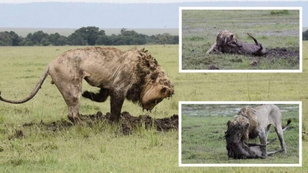 Лев, решивший съесть на обед бородавочника, провёл семь часов, пробираясь сквозь грязь, чтобы добраться до добычи, спрятавшейся в своей норе.