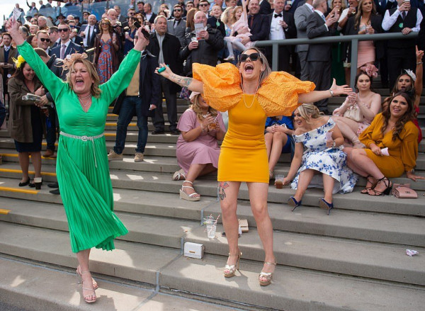 В пятницу празднование началось с того, что люди потягивали шампанское из бутылки и демонстрировали свои фигуры в смелых мини-платьях во второй день Ливерпульских скачек.Это возвращение к допандемическим годам, когда любители скачек толпами прибывали на ипподром, чтобы поболеть за лошадей.В то время, как выброшенные пластиковые стаканы, банки, сигареты - и даже туфли на высоких каблуках - выстилали полы в конце дня, гуляки все еще были застигнуты на вечеринках до вечера с веселыми лицами и напитками в руках.В пятницу присутствующие вышли во всех своих лучших нарядах в честь Женского дня, когда желанная награда за стиль вручается самой хорошо одетой женщине.В то время, как фестиваль посвящен исключительно скачкам, многие участники скачек, казалось, были более чем счастливы выставить напоказ свои вещи, соревнуясь за приз в размере 5 000 фунтов стерлингов за лучшую одежду.Grand National вернулся в Aintree после того, как мероприятие прошло за закрытыми дверями в прошлом году из-за Covid.Ожидается, что около 150 000 человек посетят трехдневный фестиваль, один из крупнейших в календаре гонок.