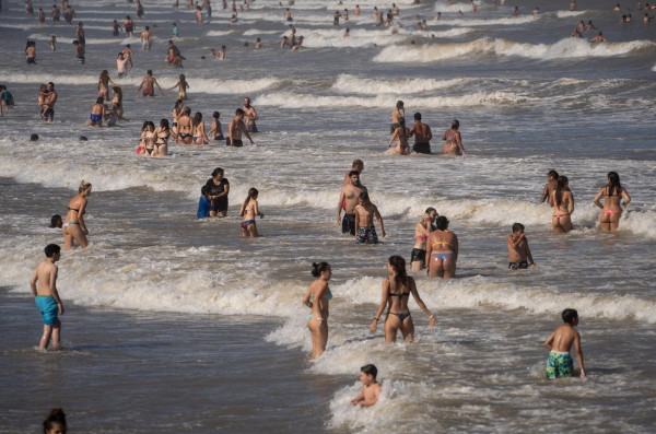 Пока у нас на улице зима и погода такая, что не хочется лишний раз туда нос высовывать, в Аргентине лето в самот разгаре. Температура воздуха в городе Мар-дель-Плата превышает 30 градусов тепла по Цельсию. Тысячи аргентинцев решили отправиться на Атлантическое побережье в первые дни Нового года. Местные жители и туристы целыми семьями и группами друзей загорают, купаются и наслаждаются теплом, солнцем и водой.