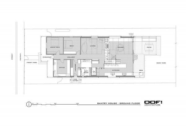 Gantry House - это превращение милого коттеджа в крытый-открытый / дом / склад / мастерскую для семьи, где можно активно отдыхать, что-то делать и собирать всевозможные вещи - горшочные растения, игрушки, предметы искусства, продукты питания, кулинарию и "сокровища" из магазина. Сохраняя свой скромный вид коттеджа на улице, дом расширяется за счёт заднего двора с просторными, солнечными, открытыми жилыми помещениями, простыми и удобными.
