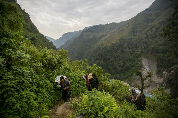 В многочасовом походе по крутым горам одна группа, возглавляемая опытным охотником за медом Деви Бахадуром Напали, несла еду, бамбуковые веревки, острые бамбуковые палки и другие инструменты, необходимые для сбора меда.Незначительный промах мог означать падение с высоты сотен футов (десятков метров) и верную смерть для охотников, которые осторожно преодолевали крутые и узкие проходы в горе.Прежде чем начать восхождение на крутой утес высоко над рекой Тама Коши, охотник напомнил группе, чтобы у них было достаточно еды, воды и местного алкоголя.Они сложили траву и бревна у подножия утеса и разожгли костер, чтобы выкурить пчел из их ульев.Непалец взобрался по лестнице, сделанной из бамбуковой веревки, с острой бамбуковой палкой в одной руке и корзиной в другой - палкой, чтобы разбивать ульи, и корзиной, чтобы собирать мед.Болтаясь в воздухе, он отрезал кусочки сот и складывал их в корзину, затем дал сигнал товарищу по команде использовать веревку, привязанную к корзине, полной медом и пчелами, чтобы опустить ее на землю. Два других члена команды приготовились очистить всех пчел и выдавить соты, чтобы извлечь мед.Тысячи пчел летали над лицами мужчин, которые были защищены сетками.Руки непальца сильно распухли. Его жалили в руки, ноги и другие части тела. Он пьет алкогольный напиток, чтобы сделать боль терпимой.В этот день группа смогла собрать около 34 литра (9 галлонов) меда. Они смогут продавать его на рынке по 25 долларов за литр.