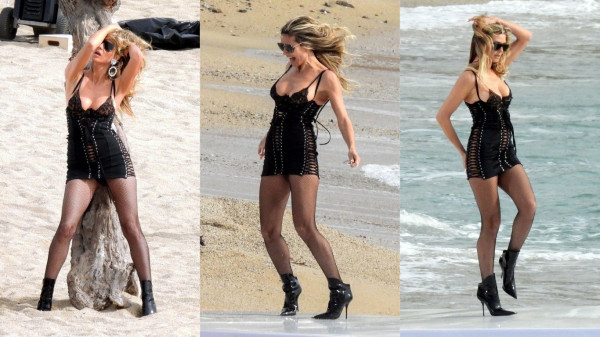 48-летняя немецкая супермодель, актриса и телеведущая Хайди Клум (Heidi Klum) позирует в сексуальном платье на пляже Миконоса, Греция.