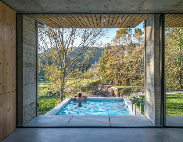 Небольшой загородный Дом Retina, спроектированный архитектурной студией Arnau estudi d'arquitectura, построен в 2017 году в небольшой каталонской деревне Санта-Пау, провинция Жирон, Испания. Авторы проекта интерпретируют дом Retina как способ установления связи с землей и место для созерцания сельского ландшафта. В таких маленьких деревнях как Санта-Пау до сих пор сохранились традиционные фермерские дома, окруженные сельскохозяйственными угодьями.