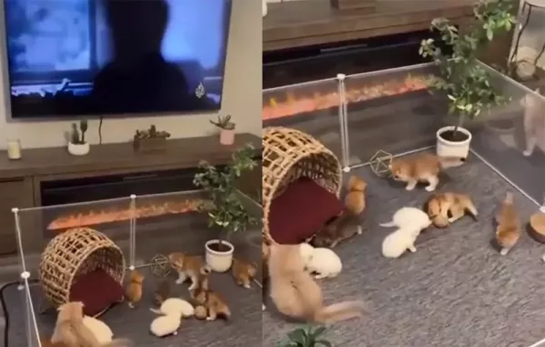 Миниатюрый детский сад для котят оборудован всем необходимым для беззаботного детства пушистиков. Тем есть мягкий коврик, уютный домик и даже декоративное растение, создающее атмосферу личных джунглей для юных исследователей.Пока малыши увлеченно осваивают территорию, их мама-кошка спокойно прогуливается снаружи, позволяя котятам быть в меру самостоятельными. Она изредка поглядывает на свое шустрое потомство с видом опытного педагога, который точно знает, что детский сад работает как часы, а значит, можно посвятить время себе.