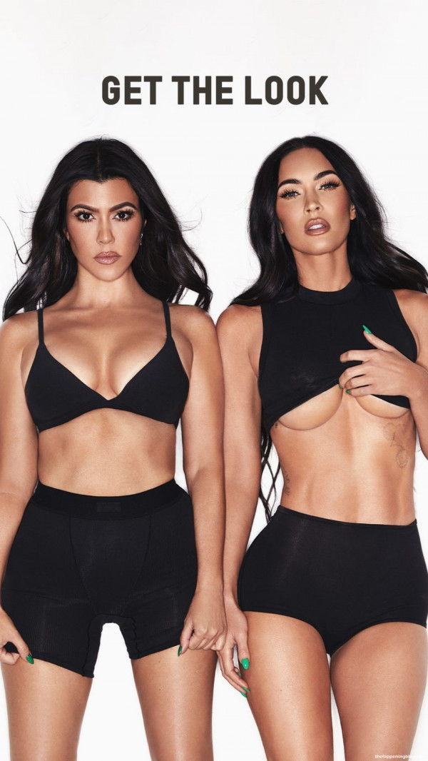 35-летняя американская актриса и фотомодель Меган Фокс (Megan Fox) и 42-летняя американская фотомодель, актриса, бизнесвумен Кортни Кардашян (Kourtney Kardashian) в позируют в нижнем белье для новой коллекции SKIMS.