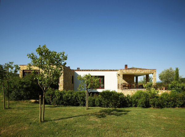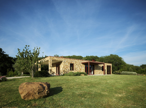 Вилла Poggio Romano, спроектированная Studio Benaim, построена в 2017 году в деревне Бракканьи, город Гроссето, область Тоскана, Италия. Двухуровневый дом площадью 300 квадратных метров находится в одном из самых красивых мест тосканской Мареммы: на окраине пробкового леса, где на местной ферме выращивают оливки и овощи, а также разводят свиней породы Cinta Senese. Для строительства виллы был определен живописный участок на склоне холма, который плавно спускается к ручью. Перед архитекторами стояла задача создания современного просторного дома, учитывающего морфологию земли и окружающую природу.
