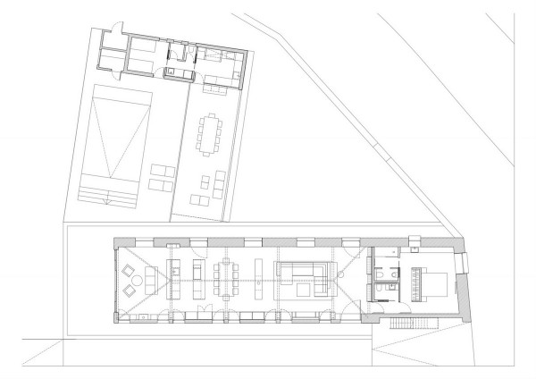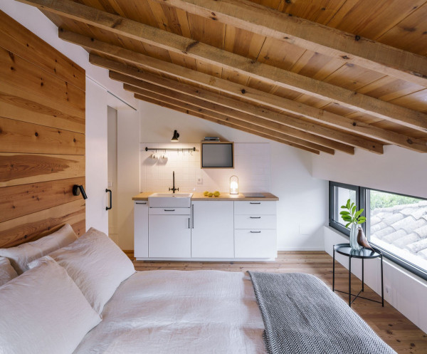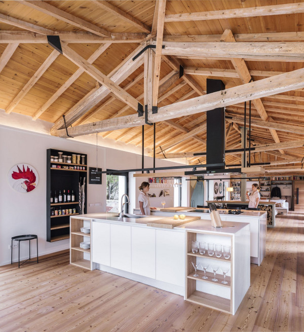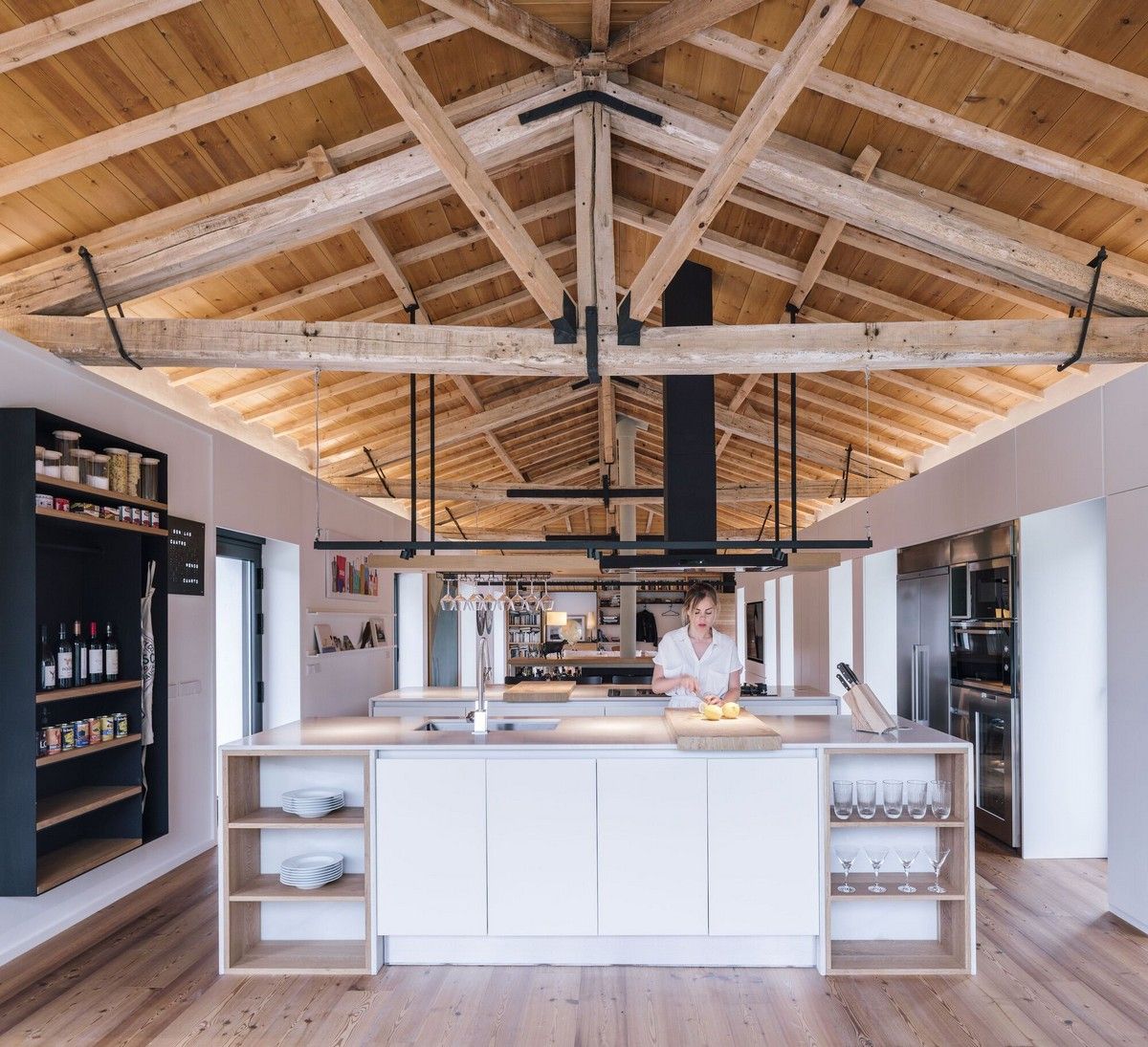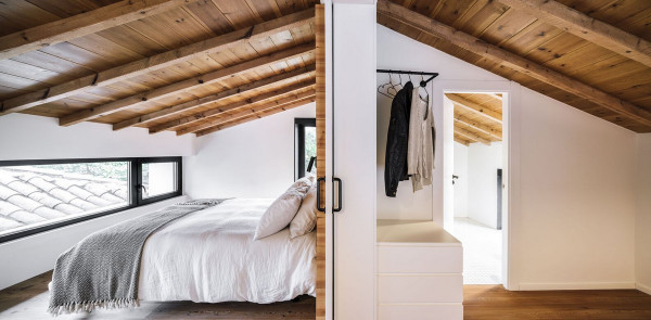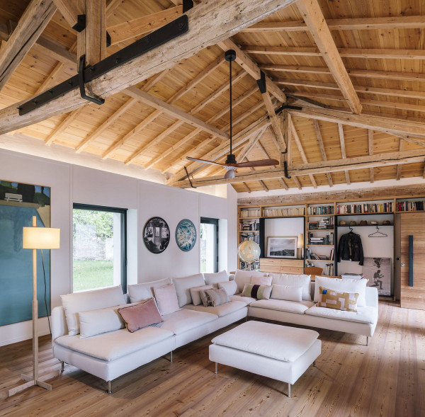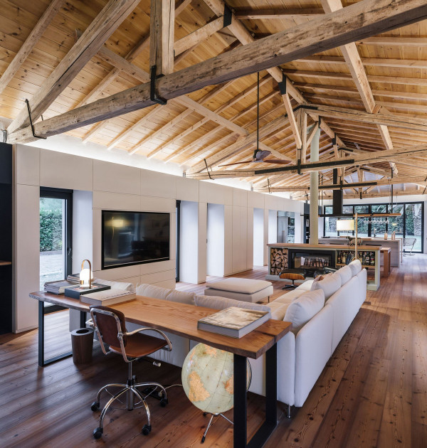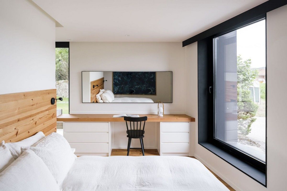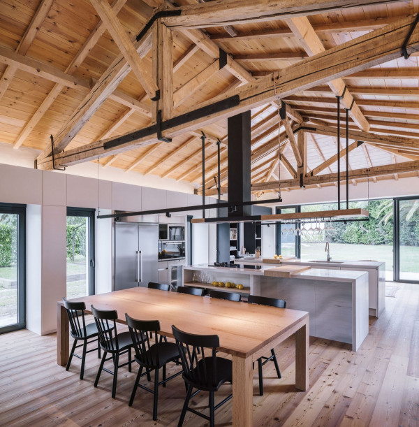 Вмешательство в оригинальное строение было основано на уважении и бережном отношении к его архитектуре. Первоначальное предназначение конюшни сохранено в простом деревенском облике здания, архитектура которого основана на несущих стенах и крыше из деревянных балок, покрытых черепицей. Самые значительные изменения коснулись восточного и южного фасадов, которые были почти полностью разрушены. Северный и западный фасады были отремонтированы и приобрели более современный вид. Новые большие окна открыли вид на горы и наполнили пространство естественным светом, а несколько стеклянных дверей обеспечили беспрепятственный выход из дома сразу во двор.Чтобы сохранить ощущение простора, от внутренних перегородок решили отказаться. Все пространство занимают линейно расположенные общественные зоны: кухня с дровяным камином, просторная столовая с деревянным обеденным столом, гостиная, центром которой является большой угловой диван нарядного белого цвета и домашний офис с библиотекой. Раздвижные стеклянные двери со стороны кухни связывают дом с открытой террасой. Деревянные жалюзи, при необходимости, обеспечивают конфиденциальность. Высокий потолок с открытой деревянной крышей и старыми деревянными балками создают особую деревенскую атмосферу, наполненную теплом и уютом. За деревянным стеллажом домашней библиотеки скрыта главная спальня с ванной и гардеробной. На верхнем этаже находится еще одна спальня.L-образная новая пристройка отличается более рациональной архитектурой, в то же время, сохраняющей простоту и строгость. Она отделена от существующего строения большой крытой верандой с прекрасно оборудованной зоной отдыха. Между двумя строениями оборудован открытый бассейн с деревянной палубой. Пристройка располагает гостевым номером и сауной.Общая площадь дома после реконструкции и расширения составила 310 квадратных метров. В дизайне экстерьера и интерьера используется много натуральных материалов, доминирующими среди которых являются местные дерево и камень. Металлическая конструкция и бетон создают современный контраст традиционной архитектуре. Открытая планировка, панорамное остекление и множество выходов из помещений во двор обеспечивают ощущение единства внешних и внутренних пространств.Сохранив типичную атмосферу кантабрийских домов, резиденция обладает всеми современными удобствами, что делает пребывание в нем комфортным и привлекательным.