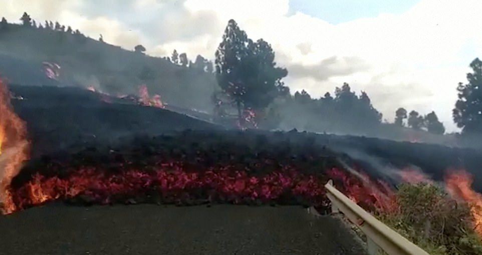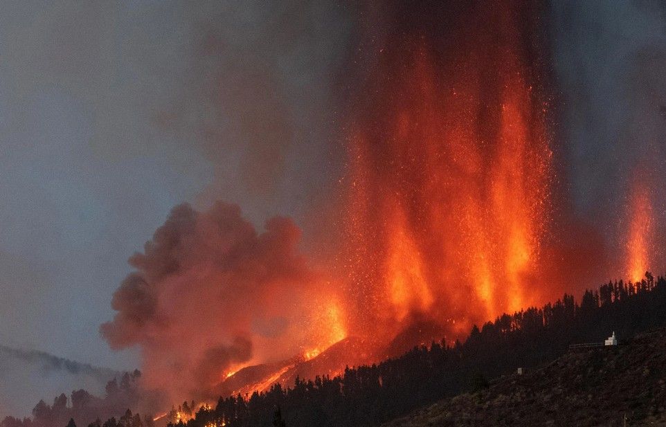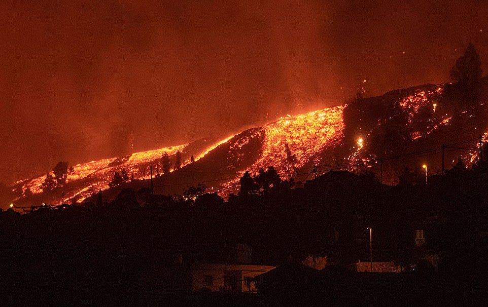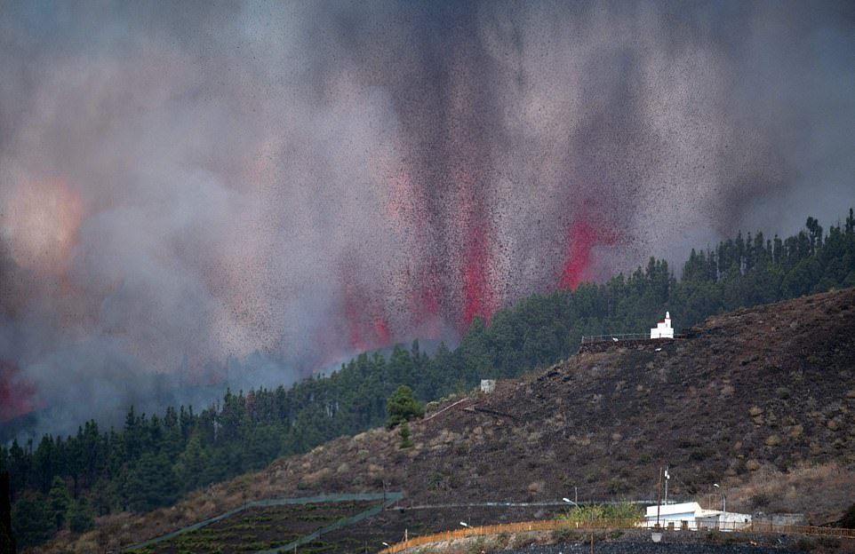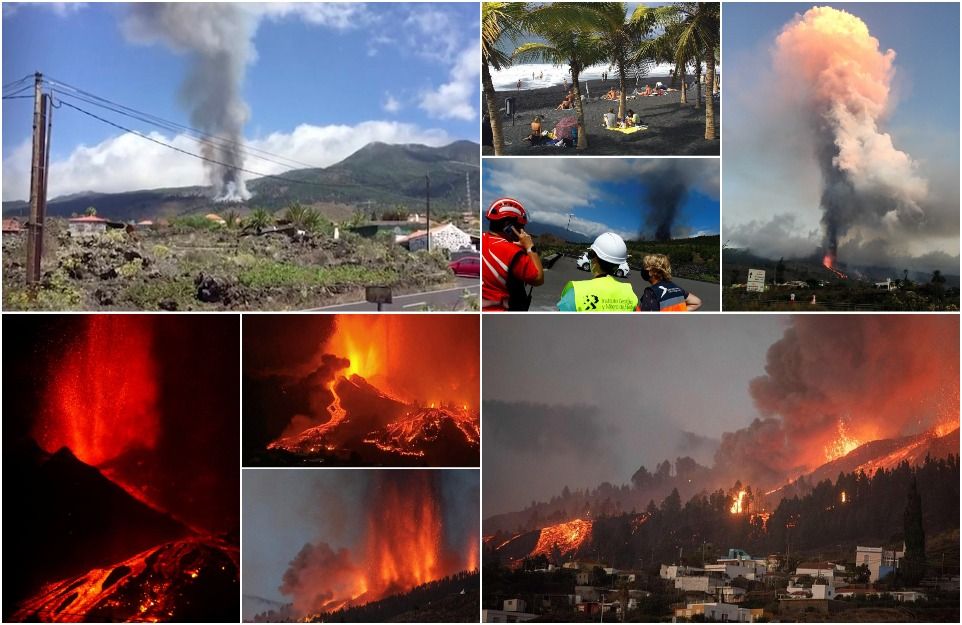 Взрыв произошел на горе Кумбре-Вьеха в районе, известном как Кабеса-де-Вака, на западном склоне вулканического хребта, спускающегося к побережью, и произошел после того, как только за последние пять дней на острове было зарегистрировано до 1000 землетрясений.Огромные красные столбы, увенчанные черно-белым дымом, вырвались вдоль вулканического хребта, за которым внимательно следили ученые из-за скопления расплавленной лавы под поверхностью.Мэр Серхио Родригес заявил, что 300 человек, находящихся в непосредственной опасности, были эвакуированы из своих домов и отправлены на футбольное поле Эль-Пасо, когда одна река лавы соскользнула в сторону деревни, в то время как спасательные службы провели эвакуацию людей с проблемами мобильности за несколько часов до извержения.По данным Гражданской гвардии, оповещение об извержении вулкана сменило желтый сигнал светофора на красный, поскольку эвакуация затрагивает более 5000 человек из разных районов муниципалитетов Эль-Пасо, Тасакорте и Лос-Льянос-де-Аридане.Дороги были закрыты из-за взрыва, и власти призвали любопытных не приближаться к этому району.Это происходит после того, как за последние пять дней были зарегистрированы тысячи подземных толчков, за которыми последовало землетрясение магнитудой 3,8.Испанские сейсмологи заявили, что извержение может продолжаться в течение нескольких месяцев, так как лава продолжает извергаться из вулкана.Правительство Испании заявило три дня назад, что "нет четких доказательств того, что извержение было неизбежным".Последнее извержение на Канарских островах произошло недалеко от острова Эль-Иерро в 2011 году и продолжалось в течение пяти месяцев.