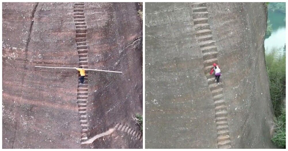 Местечко находится неподалеку от города Шаогуань и включено в список наследия ЮНЕСКО. Там полно скал всех форм и размеров, густые леса, адреналиновые подъемы и обалденные виды.Экстрим-прогулки в китайском геопарке Данься. Рискнули бы подняться?