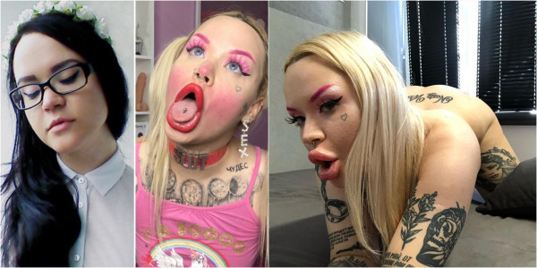 Анастасия Кримсон с Украины за свою жизнь успела поменять несколько образов, которые разительно между собой отличаются. В подростковом возрасте, потакая модным веяниям, девушка стала готом, чем сильно напугала родителей. Но спустя годы от мрачных тонов в одежде и волосах не осталось и следа. Вместо этого - приторно яркий розовый и внешность "живой секс-куклы".
