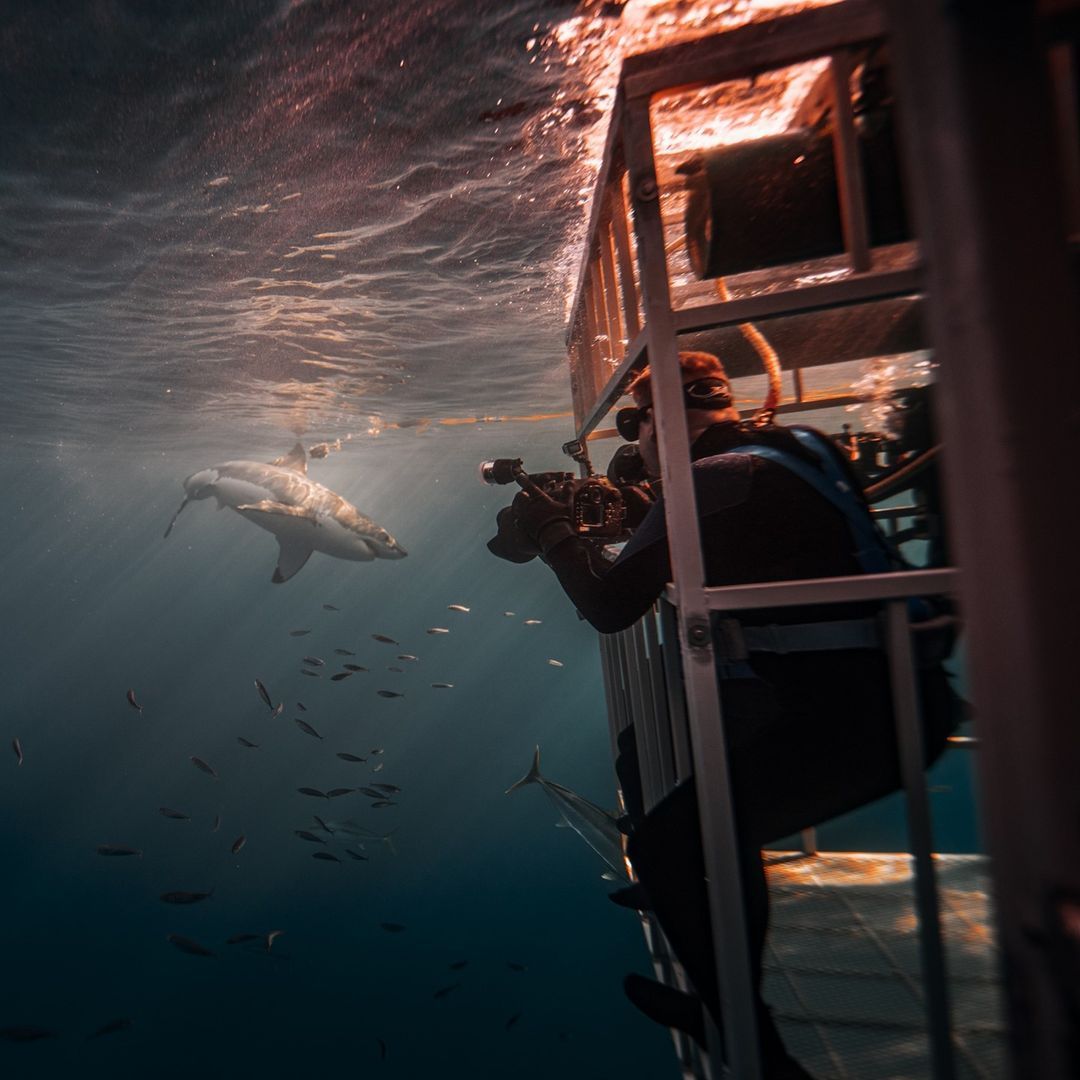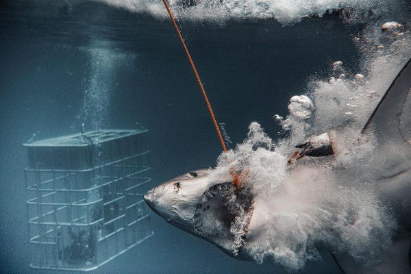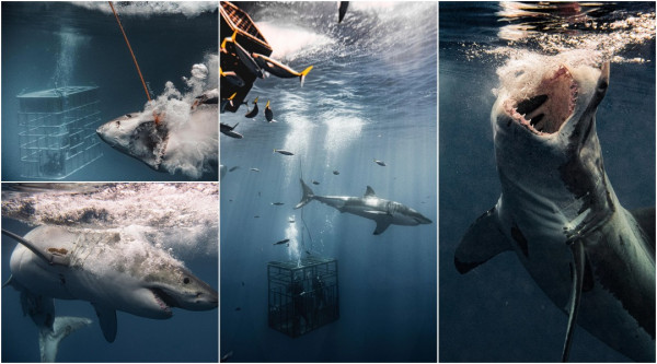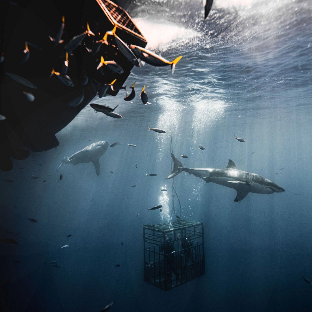 Храбрый фотограф Юэн Ранначан сделал экстремальные снимки из клетки в водах, кишащих акулами, но настаивает, что это не нервирует, находясь так близко к челюстям хищников.Смелый 36-летний житель Лондона Кейдж ежедневно ныряет и часто проводит до семи часов под волнами, ожидая и надеясь на потрясающие моменты, такие как атаки белых акул.Сейчас Юэн живет в Калифорнии и говорит, что страшные существа завораживают его, и он впервые занялся дайвингом в пещерах в 2016 году на острове Гуадалупе.Теперь он руководит компанией Be A Shark - туристической компанией, которая приглашает желающих сфотографировать больших белых акул в водах у острова в Мексике.