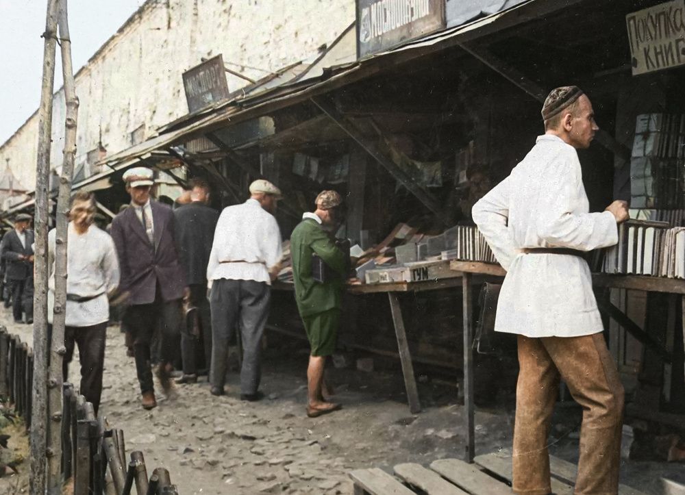 Книжная торговля у Китайгородской стены. Москва, 1932 год.