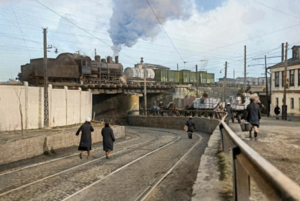 Виадук над шоссе Энтузиастов. Москва, 1926-1936 год.Жизнь кипела как и сейчас, люди спешат по делам...