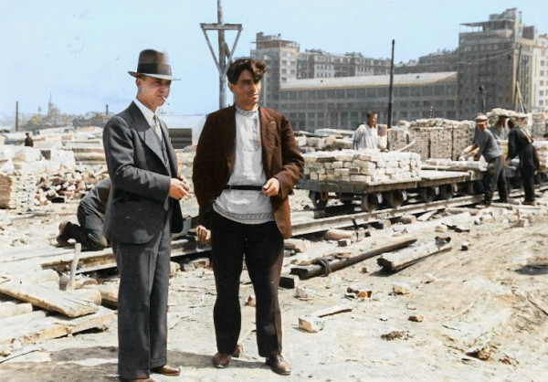 Американский архитектор Гектор Гамильтон на строительной площадке Дворца Советов.Дворец Советов
