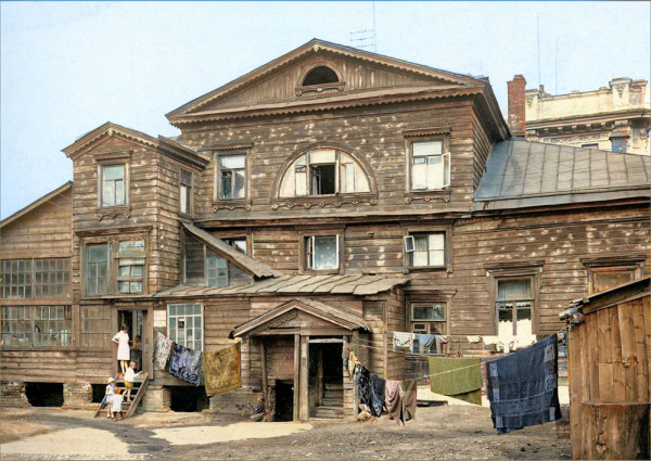 Дом Хвостовых (Чибисовых) у Покровских ворот. Москва, 1930-е.Слишком мне понравился этот необычный дом, решил добавить фотографию того, как он выглядел в 1930-е. Деревянный особняк Хвостовых (Чибисовых), возведённый в середине XIX века у Покровских ворот, занимал участок нынешнего сквера вплоть до 1930-х годов. На его месте в период с 1936 по 1938 год по проекту архитектора Чериковера было построено новое здание, предназначенное для сотрудников Академии имени Дзержинского, чьи учебные корпуса располагались в соседних Покровских казармах.
