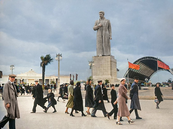 Памятник Сталину на ВСХВ. Москва, 1939 год.Монументальное скульптурное произведение, удостоенное Сталинской премии за 1941 год.До сноса находился на ВСХВ у павильона "Механизация и электрификация сельского хозяйства СССР".Гигантскую статую Сталина потом снесли и на этом месте поставили макет ракеты-носителя "Восток".