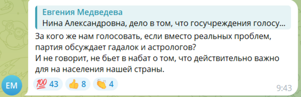 Если закон примут, то "белые колдуны в пятом поколении" не смогут пиариться, а ресурсы с предложением их услуг будут заблокированы.Один из авторов инициативы, депутат Нина Останина, считает, что эти практики не имеют под собой научной основы и просто служат прикрытием для мошенников.Более 100 миллиардов рублей из карманов домохозяйств и семей эти мошенники увели только за 2024 год... Неучи, проходимцы, шарлатаны и обманщики - объявляю вам войну. Иду на Вы! - заявила она.