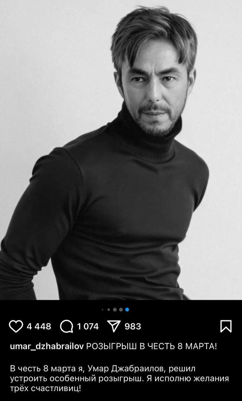 В преддверии 8 марта Умар Джабраилов, который позиционирует себя коучем по обогащению, объявил в соцсетях конкурс для прекрасных дам, пообещав выполнить самые заветные желания трёх победительниц.
