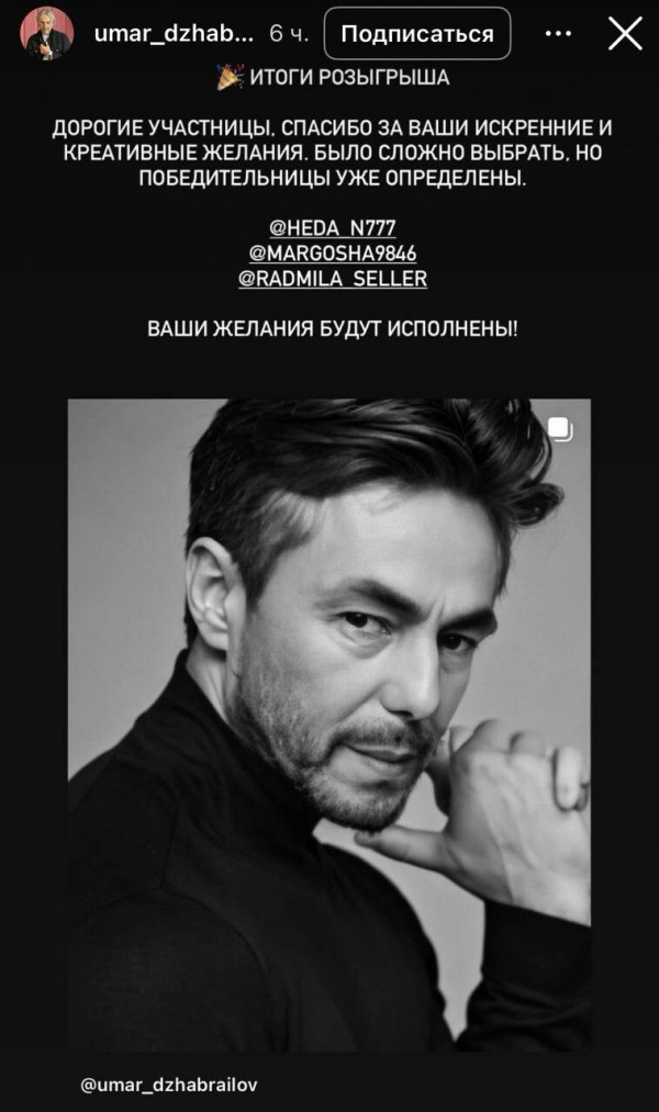 Бизнесмен долго выбирал и, наконец, определил трёх победительниц. Ими стали дамы, попросившие книги и ручку! Джабраилов написал, что ему было сложно выбирать из стольких искренних и креативных желаний, но он сумел.