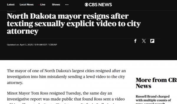 Короче, трагедия произошла у мэра Майнота (один из крупнейших городов Северной Дакоты) Тома Росса в январе, а в прошлый вторник он был вынужден уйти в отставку. Но обо всем по порядку.У мэра был телефонный разговор с прокуроршей Стефани Сталхейм по поводу одного копа, который покончил с собой.