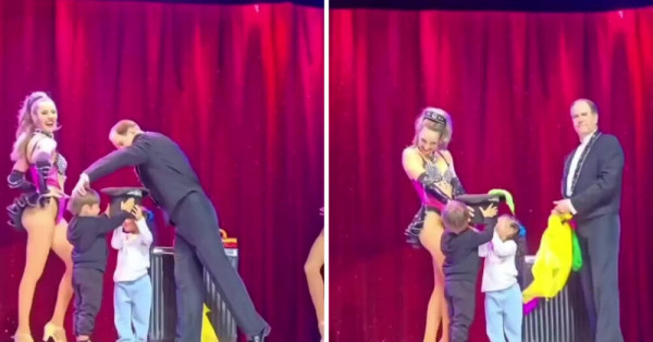 Юного зрителя пригласили на подмостки для демонстрации трюков, однако все его внимание захватила ассистентка иллюзиониста. Её изящество, плавность в каждом жесте и таинственная полуулыбка притягивали взгляд гораздо сильнее, чем любые чудеса.
