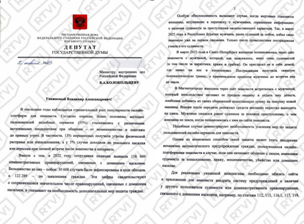 И ещё одна инициатива, но уже от других депутатов ГД - Ярослава Самылина и Ксении Горячевой. Кстати, они тоже от партии "Новые люди". Парламентарии предложили ввести в анкетах на сайтах для знакомств, статус об отсидке. Это не шутка.Сегодня таких механизмов нет, и часто люди узнают о прошлом другого человека уже после того, как произошла беда, - заявила Горячева.