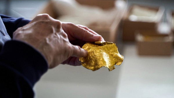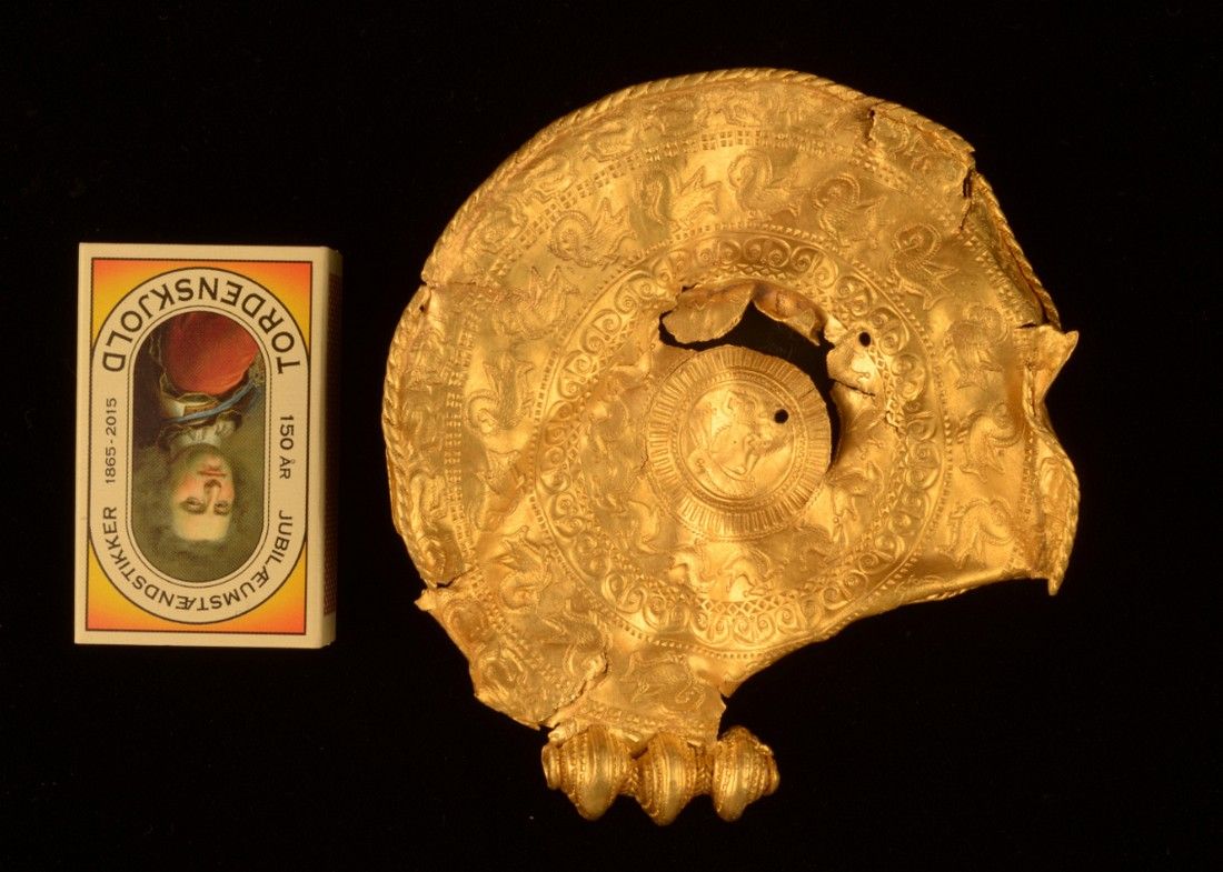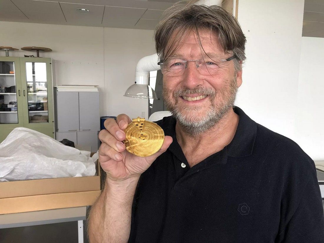 Он рассказал, что впервые использовал металлоискатель. Шитц заявил, что это была "чистая удача"."Площадь Дании - 43 тысячи квадратных километров. Но я решил опробовать прибор именно там, где находился клад", - сообщил он.Шитц добавил, что попытался размять несколько комков земли и почувствовал небольшой кусок изогнутого металла. Поначалу он решил, что это крышка от банки с селедкой. Но продолжил копать и обнаружил 22 золотых предмета общим весом 2,2 фунта (один килограмм).Вызванные археологи начали раскопки и обнаружили, что клад был спрятан под большим домом вождя клана в VI веке нашей эры. Больше всего было найдено брактеатов, медальонов, украшенных магическими символами и рунами. Их обычно носили женщины.На самом большом медальоне изображен бог Один. Похоже, что его создатель вдохновился римскими украшениями. На другом - римский императора Константин IV века нашей эры, прославившийся распространением христианства.Археологи считают, что находка дает ключ к пониманию того, что скандинавская мифология частично возникла из римской религии и искусства.Золото будет выставлено в музее Вайле, позже в Национальном музее Дании. Кладоискатель получит компенсацию. Ее сумма, как и стоимость находки, не разглашается.