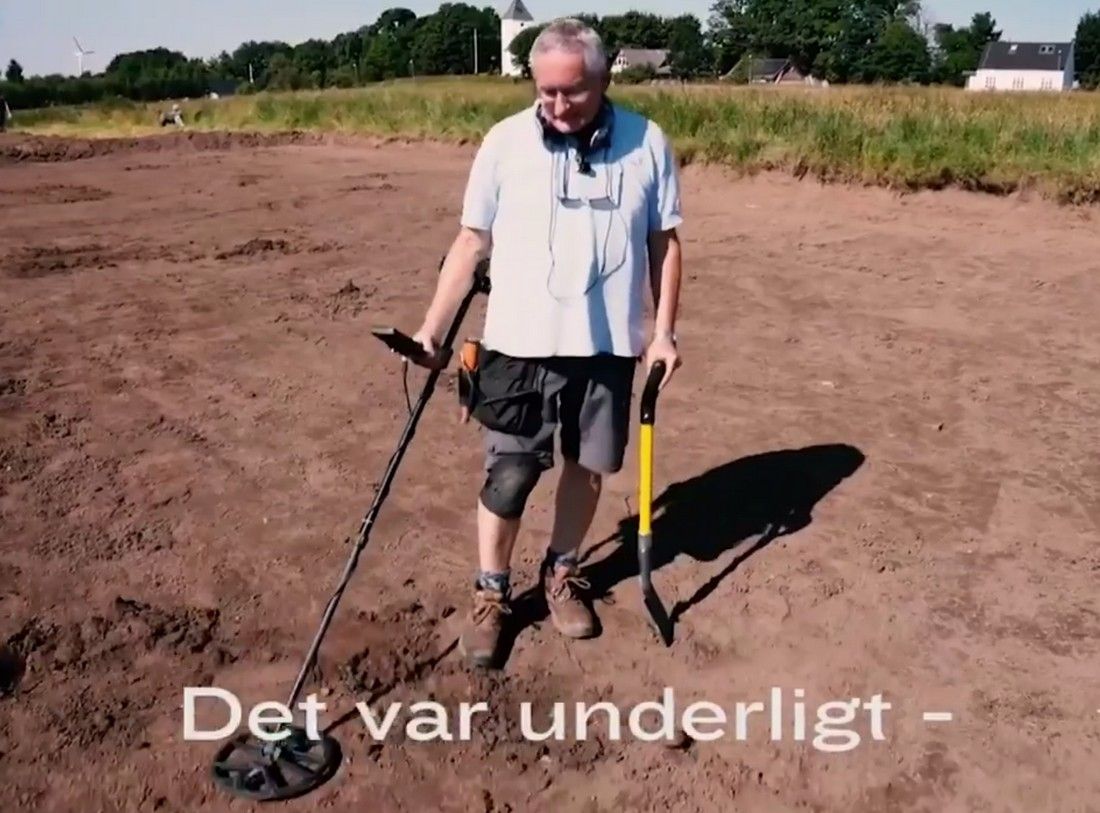 Один из самых больших золотых кладов в истории Дании обнаружил на участке своего одноклассника начинающий любитель археологии Оле Гиннеруп Шитц (Ole Ginnerup Schytz). Находка была сделана около города Еллинг. На ее поиск мужчина потратил всего несколько часов.