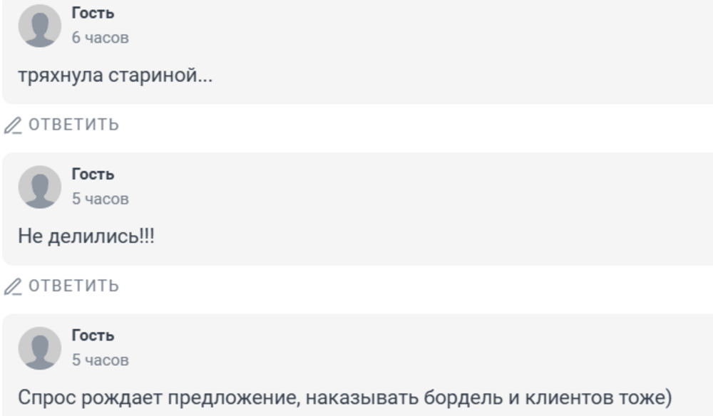 Ну а сейчас её задержали и отправили в СИЗО. Кроме неё поймали ещё троих женщин: 42, 37 и 24 лет, вероятно, вербовщиков или администраторов. Сейчас идёт следствие, по его итогам они пойдут под суд по ч. 1 ст. 241 УК РФ "Организация занятия проституцией" или ч. 3 ст. 240 УК РФ "вовлечение в занятие проституцией, совершенного организованной группой".А шустрая пенсионерка может получить обвинение по двум статьям сразу. Возможно, выяснится, что в деле участвовали и другие люди, такое иногда бывает. Или же бабуля действительно организовала всё сама: тогда она и правда обладает неплохими управленческими навыками и задатками криминального авторитета.Но от колонии это её вряд ли спасёт.