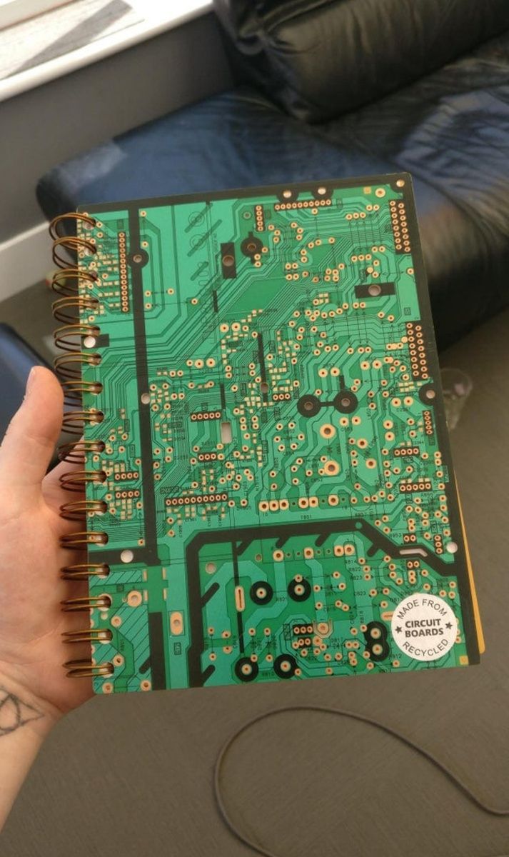 Печатные платы пригодились при создании блокнота. Теперь у него крутая обложка