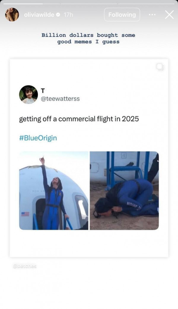Это первый полёт полностью женского экипажа в космос с 1963 года, когда туда отправилась Валентина Терешкова.Впрочем, на этот раз космическое путешествие было чисто туристическим, а на борту находились певица Кэти Перри и её подруги, включая невесту основателя "Амазон"Лорен Санчес . Помимо них в космический корабль сели кинопродюсер Кериэнн Флинн, телеведущая Гэйл Кинг, экс-сотрудница NASA Айша Боу и специалист в области биоастронавтики Аманда Нгуен.Сам полёт продлился около 10 минут, после чего без помех капсула с экипажем приземлилась, и миллиардер Джефф Безос первым лично открыл её, чтобы поприветствовать девушек, побывавших в космосе.Конечно, кто-то картинно целовал землю, кто-то старался выглядеть так, словно вернулся после годового пребывания на космической станции.Вся эта история стала одной из главных новостей мировых агентств, но многие интернет-пользователи полёт не оценили. Точнее, не поняли, ради чего было столько шумихи и затрат ресурсов.Актриса Эмили Ратаковски захейтила девушек в том, что они поддерживают уничтожение планеты:"Подумайте о том, сколько ресурсов было потрачено на то, чтобы отправить этих женщин в космос. Для чего?" - удивляется она.Тем же вопросом задаётся актриса Оливия Уайлд, спрашивая, стоило ли тратить деньги на запуск этого корабля.