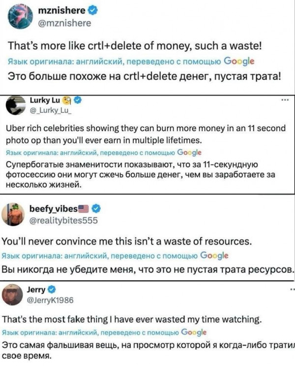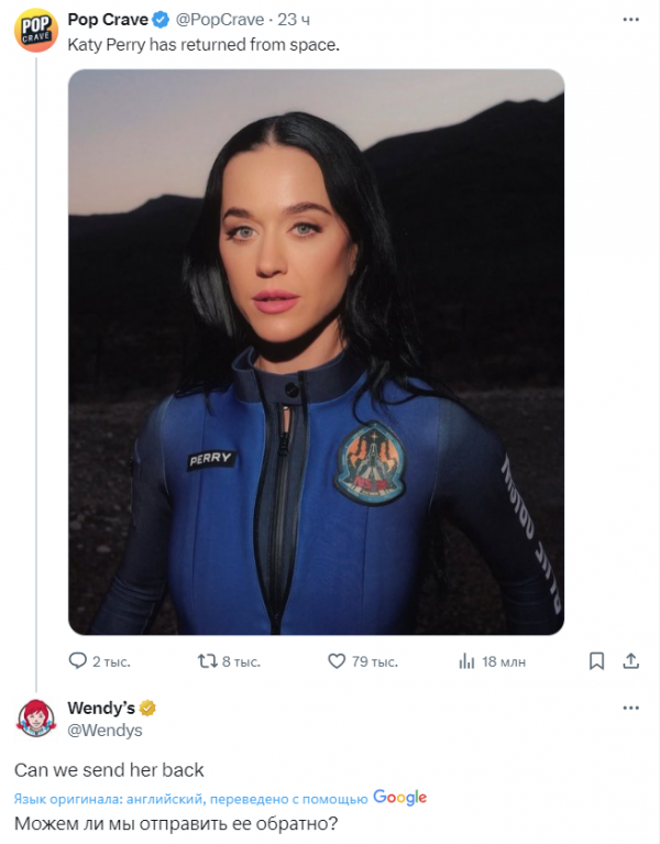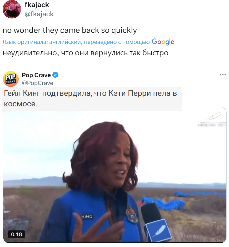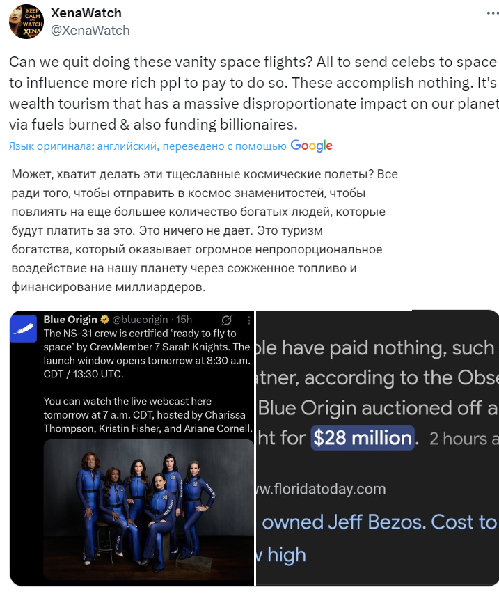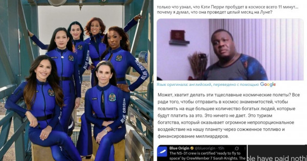 Пользователей сети также удивил тот факт, что какое-то 10-минутное пребывание в космосе селебрити разрекламировали так, будто на МКС или куда-то еще отправляется целая научная миссия, которой предстоит год исследовательской работы.Поэтому над путешественницами стали подшучивать и откровенно их троллить.