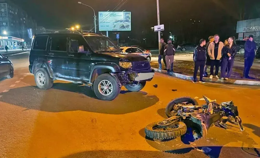 Октябрьском районе Новосибирска водитель автомобиля УАЗ Патриот, поворачивая налево на улице Выборной, не заметил мчащийся на заднем колесе мотоцикл. Мотоциклиста после столкновения увезли в больницу. Оказалось, что ему всего 17 лет.