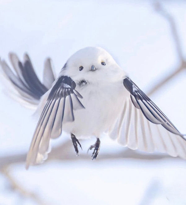 Сима-энага (или шима-энага) - подвид длиннохвостой синицы, который встречается только на острове Хоккайдо в Японии. За специфический внешний вид японцы прозвали птичку снежной феей.