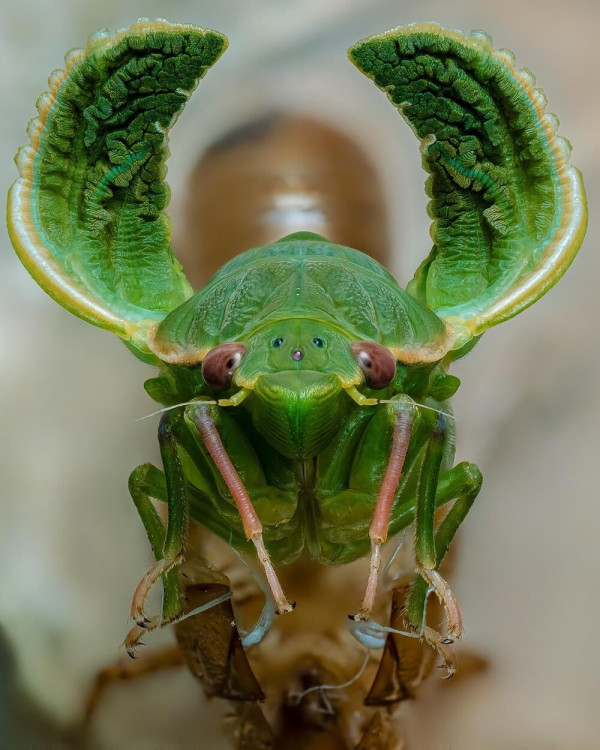 Последняя линька превратила нимфу цикады в настоящее взрослое насекомое Cystosoma saundersii.