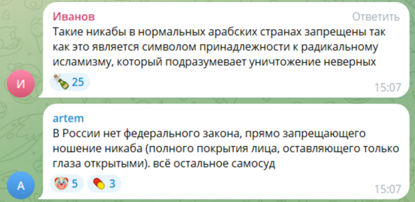 Свою вину женщина не признала. А что касается никабов - например, в Чечне их ношение категорически не приветствуется. В Дагестане тоже идут разговоры о том, что носить их в общественных местах не стоит. Но в целом в России их носить пока можно, хотя чиновники разных уровней и общественники периодически говорят о том, что эту религиозную одежду нужно запретить.