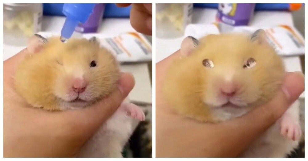 У хомяков тоже встречаются различные проблемы с глазами. Из-за этого питомцам необходимо капать специальные глазные капли. Вот как выглядит эта процедура.