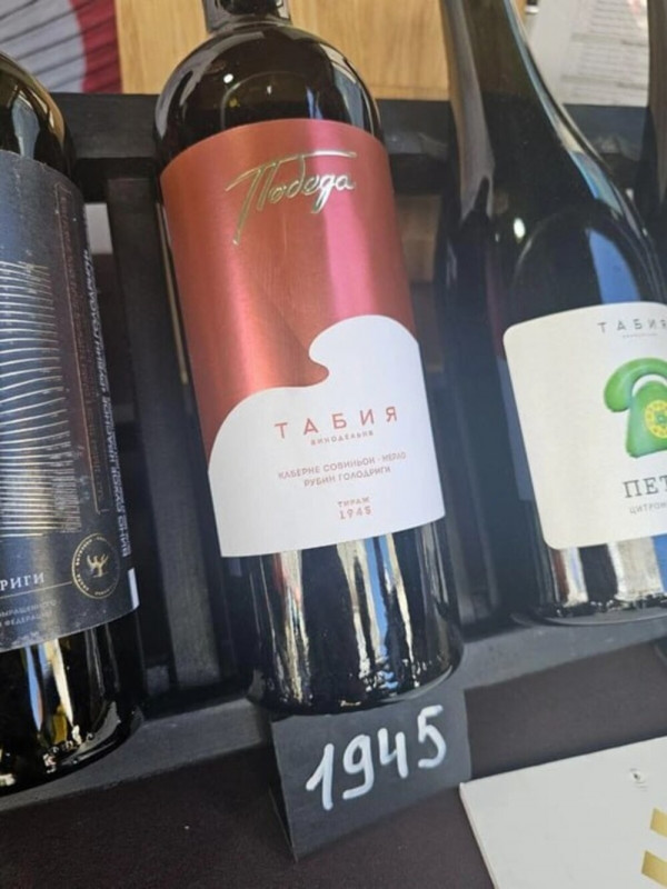 Там женщина заметила вино под названием "Победа" с ценником в 1945 рублей. Кстати и тираж соответствующий - 1945 бутылок.