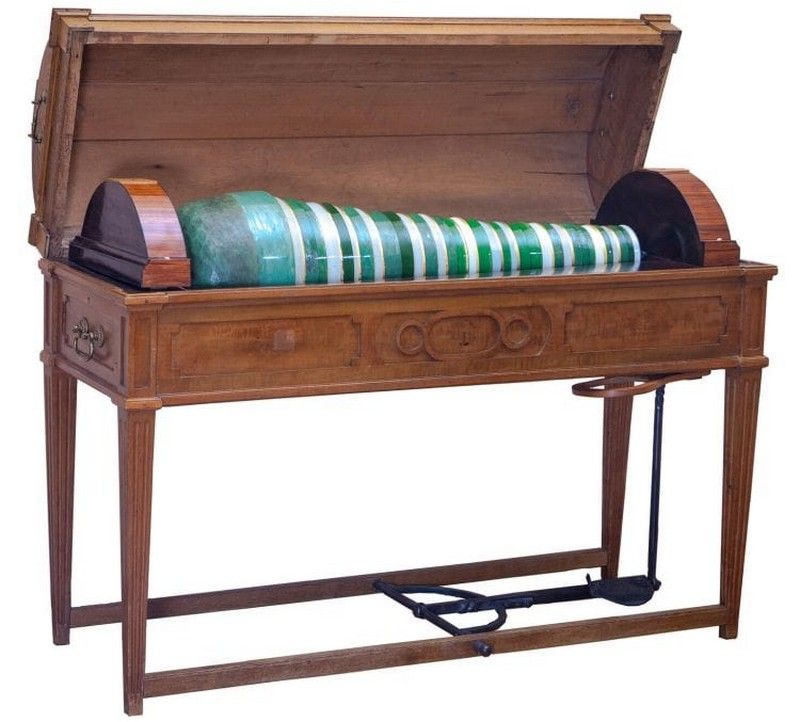 В мире огромное количество разновидностей гармоний, но стеклянная гармоника совершенно особый, уникальный инструмент.Он создан из нескольких стеклянных полусфер разного размера, все они закреплены на металлической оси, которая установлена в ящике- резонаторе, наполненном разбавленным уксусом. Полусферы вращаются при нажатии на педаль и издают нежные, ласкающие звуки.Не следует считать стеклянную гармонику современным изобретением. Этот инструмент известен с середины 17 века. Известно, что в некоторых европейских городах были даже изданы законы, запрещающие ее использование.Считалось, что звуки этой гармоники пугают животных, разрушают душевный покой, вызывают выкидыши и даже могут свести с ума.
