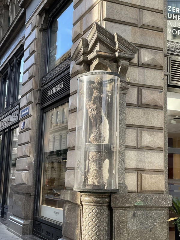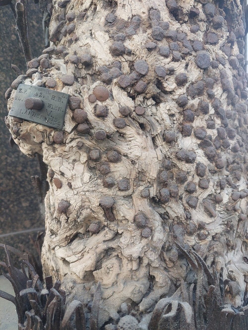 В самом сердце Вены, на площади Шток-им-Айзен-плац (Stock-im-Eisen-Platz), стоит необычный памятник - фрагмент старого дерева - ели, усыпанного десятками гвоздей и надёжно спрятанного в стеклянный цилиндр.