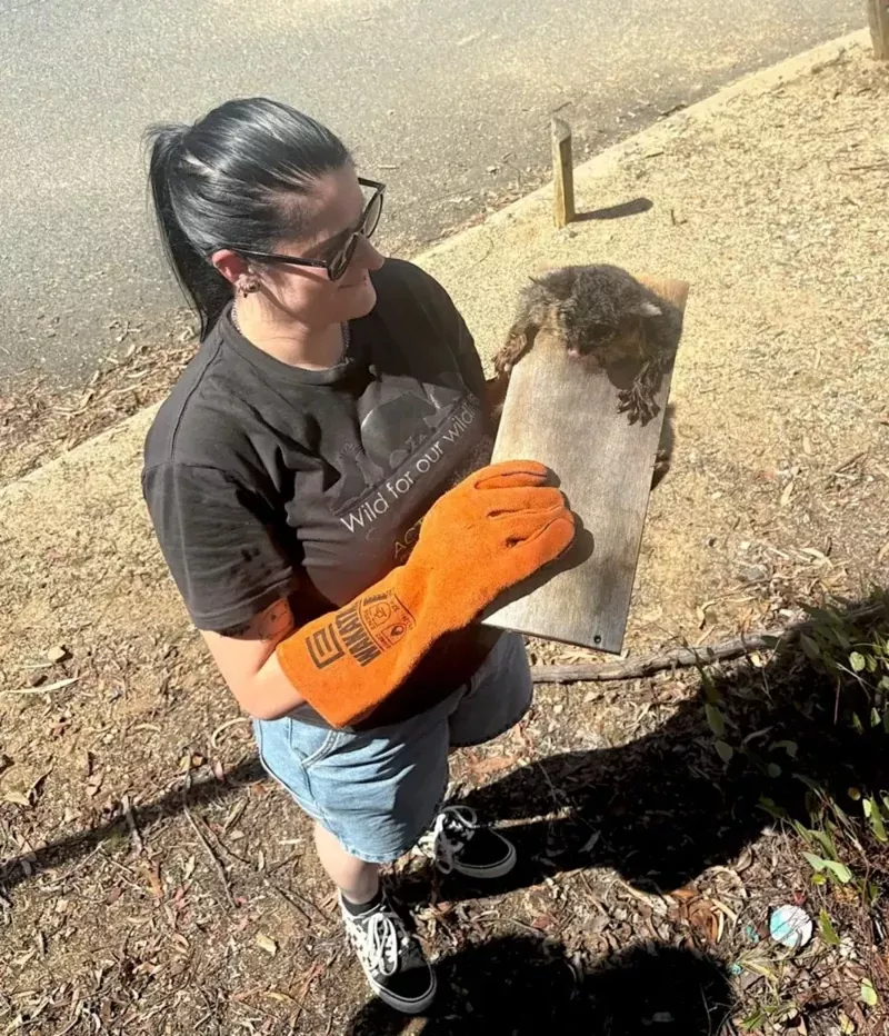 Несчастный поссум застрял, но он может радоваться тому, что ему на выручку пришли специалисты из организации "ACT Wildlife" (Австралия).