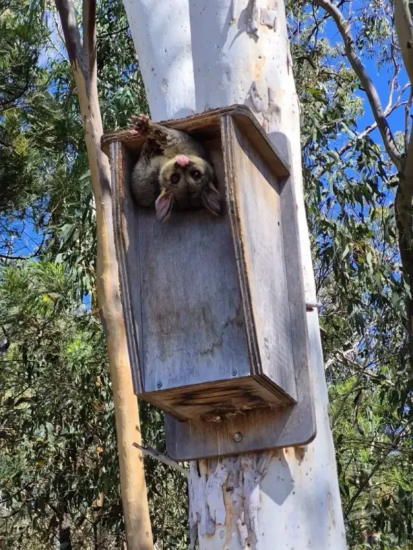 Но вот беда - зверёк выбрал совершенно неправильный домик, предназначавшийся вовсе не для него. Поссум решил поселиться в птичьем скворечнике и быстро выяснил, что отверстие скворечника слишком маленькое и узкое для его упитанного пушистого тельца.