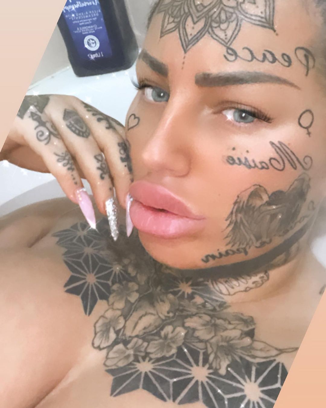 Тату-мастер из Харлоу, графство Эссекс, заинтересовалась профессией в 18 лет и с тех пор начала наносить различные орнаменты и фразы на кожу. В настоящий момент ее руки, ноги, живот, грудь, спина и шея практически полностью покрыты татуировками. Лицо девушки также расписано девятью надписями, в том числе stand out ("выделяйся из толпы") и be original ("будь оригинальным").Героиня материала призналась, что часто получает критику и оскорбления со стороны незнакомцев на улице, однако привыкла не обращать внимание на чужое мнение. По словам Синклэр, единственная татуировка, о которой она действительно сожалеет - это имя ее бывшего молодого человека на ягодице. "Мы встречались всего две недели, но тогда мне казалось, что это потрясающий человек. А я очень импульсивна в отношении наколок", - посетовала она.Вскоре выяснилось, что во время свиданий с Синклэр мужчина уже состоял в отношениях с другой девушкой. "Он отговаривал меня делать тату, но я не послушалась. Теперь мне понятно, что у него тогда был кто-то еще. Я еще не закрасила его имя, но собираюсь сделать это в ближайшем будущем", - заключила британка.