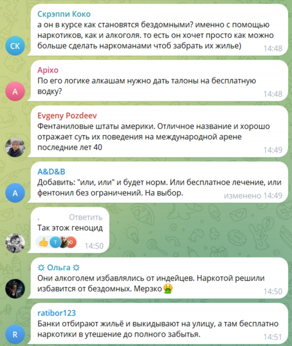 Он добавил, что фентанил "настолько просто" раздобыть на улицах, что никто уже не удивится, если его начнут раздавать бесплатно. Мэр сообщил, что иначе город никогда не избавиться от бомжей, которые уже изрядно утомили рядовых граждан. Поэтому он предложил Дональду Трампу "устроить чистку" Ланкастера.Теперь это жестоко? Конечно, жестоко. Но это моя обязанность как мэра города Ланкастера - защищать трудолюбивые семьи, которые там живут, и я больше не могу этого делать... Это невыносимая ситуация, и я открыт для любого решения... Я хочу, чтобы эти люди покинули наш город.