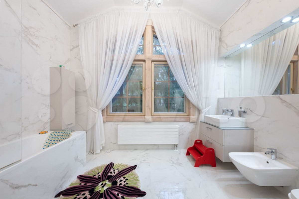 Согласно предложению, за коттедж в 450 квадратных метров на участке в 50 соток хозяин рассчитывает получить 150 миллионов рублей. Рядом русская баня с купелью, крытый гараж на три авто, нормы инсоляции и искусственного освещения перевыполнены, а в целом конструкция отсылает к викторианству. Примерно перед такой печью, как у Кержакова, Холмс и Ватсон подводили итоги очередного запутанного дельца.На первом этаже расположены кухня-столовая, гостиная со вторым светом и камином, игровая комната и домашний кинотеатр, гостевой санузел и технические комнаты. На втором этаже находятся 4 спальни со своими ванными комнатами и санузлами. Дом подключен ко всем коммуникациям и рассчитан на постоянное проживание. Внутри преобладает светлое, а бытовую лёгкость порой сбивает бархат тяжёлых штор. Кухонная сантехника дышит хромом, ванная и уборные - мрамором. В кинозале над плазмой сине-гранатовая футболка с номером 19.