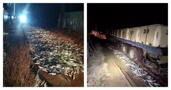 Усыпанная селедкой дачная дорога в Корсаковском районе Сахалинской области привлекла внимание местных жителей и попала на видео. Запись публикует "Точка отсчета" от телеканала АСТВ.Инцидент произошел 22 апреля в селе Нечаевка. Рыбы на дороге было настолько много, что автомобили не могли двигаться дальше и лишь застревали. Все это показано и на видео, снятое местными жителями. В ночи там расчищают проезд, после чего большая машина пытается выехать из селедки, но встает и застревает в этом "фарше"."Только на Сахалине. Новый стиль. Селёдка-плитка тротуарная. Сейчас ещё каток пойдет. Пошел, давай фарш!" - комментируют за кадром свидетели процесса.По данным АСТВ, большое количество селедки оставили рыбаки, работающие недалеко от села. "Те повадились ездить по дачной дороге, с чем люди борются уже давно", - утверждается в сообщении.